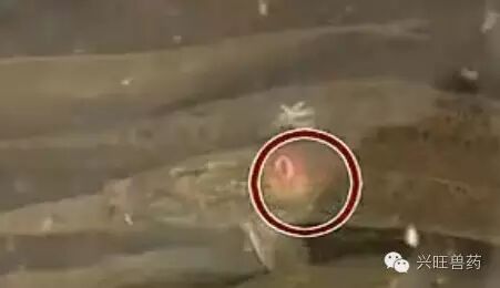 2、初期症状是皮肤出现圆形、椭圆形的红斑,好似在鱼体上加盖红色印章,随着病情的发展,形成溃疡,露出骨骼和内脏。