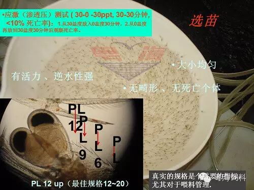 4 活力,取100-200尾虾苗放入盆中,用手伸入水中,健康虾苗立刻应激逃避;或者用手拨动水体形成水流,健康虾苗则逆水游泳。