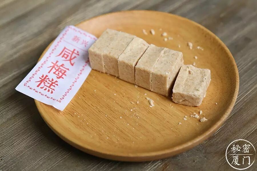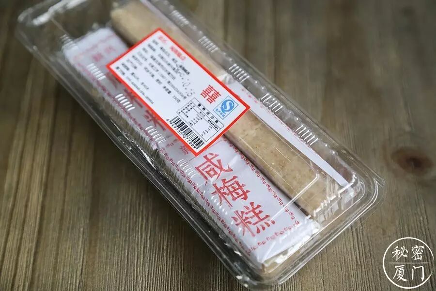 咸梅糕的包装只是一个简单的盒子钉起来,旧式的红白,标签上还有印着红双喜,就是小时候常常见到的那种包装。连味道都朴实的毫不浮夸,咸香之中带有花生香,一口下去,满口都是绵绵的糕点味。买回去送给长辈,他们一定会喜欢。
