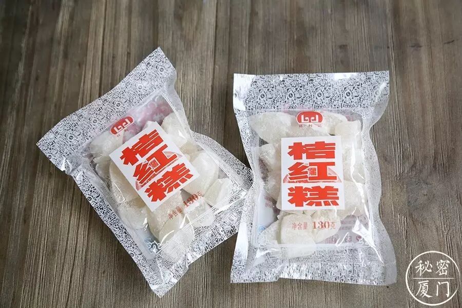 桔红糕外表晶莹,口感软糯,即使吃起来有点粘牙也无法阻止对它的喜爱。绵绵甜甜,吃下去总觉得自己像没牙齿了,吃完一定记得擦嘴巴,不然小心长了一圈白胡子。小时候的零花钱没少贡献给桔红糕。