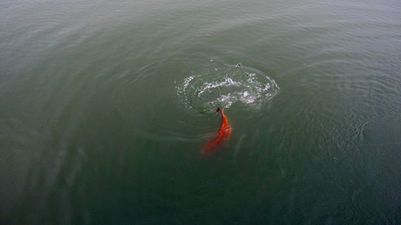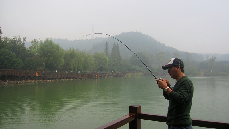 时至深秋,冬天和我只有一步之遥,此时最为突出的景色就属枯黄的落叶了,落叶者离别也,一去不复返的离别,好一番秋风秋雨秋煞人的惆怅和无奈。田野间果实尽收,曝出一幅荒凉图,这样凄婉景致是来年新装的铺垫——秋草能为春草新。任何情怀都是短暂的抱怨,让我们向前看看光明的未来,就像渔人跑鱼的那份遗憾,终究会被下一条鱼给冲散,BassFishing来到最后的疯狂季,接下来是缓慢的寒冬节奏。 自从上个月25号那次断钩跑鲤鱼经理历历在目,每次来白象湾都心心念念惦记着那几条巨大的锦鲤,这次和阿发约钓特意让他给我带了红薯,哈哈哈,有点的想法呢。这是一个漫长有趣的故事,下文我会简略描述下。苏州城已经要个把月没有雨水了,而且气温还一直不正常的高,说好的冷气呢?说好的降温呢?秋雨绵绵的外景都哪里去了?还能不能愉快的玩耍钓鱼了?内心这段热情的段子隐隐约约被上苍听到了,上周就约好的出钓时间,偏偏挑到了这个阴雨天。既然约好了,那么就算天上下钱也得硬着头皮出钓啊。 早上出门有点太阳,庆幸天气预报又出问题了,到了停车场天完全阴沉了下来,不过气压还算不错,带上UL和MH奇葩组合来到水塘边,除了一路秋叶纷飞和常绿植物给我提醒这是深秋,清澈的低水位给人的感觉完全是冬的节奏啊,上来我第一反应是鱼应该跑深水区了吧?提前占好温暖的位置,哈哈哈。 1、深秋的味道! 2、看看曹冲的船搁浅了。水位降了不少呢 组装好钓组,无铅削尾虫和DIY的沉水Swimbait——自己瞎研究的可以用来敲底的一只游泳饵。Swimbait抛了很久没有咬口,就当打窝了,换了无铅钓组往深浅交界的岩架搜索,第一杆等饵沉入水底,慢慢抽动竿尖无铅削尾虫就会在水里模拟出的泳姿。没多久就感觉到了咬口,扬杆作合UL从深水部分拉鱼真是很给力,30+的BASS溜出水面花了一分多钟,拍了立马放流继续,差不多相同的位置又中一尾,拉到半路跑鱼了,后来这个基地西南角深浅区域也没碰到咬口。再换了沉水Swimbait搜了几竿,就彻彻底底的把它放回盒子了。 3、前方是深浅交界的石头岩架,水位很低以前只能在栅栏上方钓 4、UL溜鱼呢 5、出水了。搞得很大一样的。 6、放流萌照 7、5英寸削尾虫无铅钓组。头部弹簧加固。 8、尾部浮力很大。可以用来敲底模拟觅食的小鱼 后来继续用削尾虫搜钓南岸的断头河区域,这片区域现在底部长满了金鱼藻,站在岸上清晰可见,我把饵抛到岸上再拉入水中,看着拟饵落到金鱼藻上方,挑动竿尖让饵缓缓的在“软床”上或跳动或快速前行,看到后面有鱼跟进我就停下动作等鱼靠近就动一下,BASS靠过来一个吸口,我抽,居然没钩牢......郁闷啊,再逗它就不理我了。后来发现有条大红色锦鲤在金鱼藻里面蹭,我换上小JIG在边上抖,它掉头就跑......在那边连跑了两条BASS有点受不了,此时天空的雨滴再也忍不住了,小雨滴轻飘飘落入水塘的景色甚是美丽,有点春雨的感觉——斜风细雨不须归。我继续搜钓,来到东边木桥上发现东侧的浅水滩有BASS追逐餐条,立马打过去落水我就用力抽动拟饵,让饵在水里动作大点引起BASS的注意,果然第二干的时候BASS就饵了,这次没让它逃跑。 9、金鱼藻 这时雨点开始变大,风也大了起来,正好和阿发汇合,阿发在木桥下也拉出一条BASS,短暂的聊了会两个人决定都不去躲雨,等会中午“OK咖喱”会面。哈哈哈。我往北岸他往南岸继续。 10、雨下起来了。风也起了 11、发哥飘逸的抛投 我在东北角栈桥那边搜钓时又发现了一条大的金色锦鲤,不过没给机会它就游走了(此鱼下面还会出场)。沿着北岸那排植物边缘(有点像美人蕉)用削尾虫无铅钓组在这里又钓了条30多的BASS,UL钓鱼每次都感觉是巨物。这时肚子有点饿了,在用无铅搜下去速度有点慢了,MH竿子上换了个IMAKATSU 的WADDLE BATS,真的是很久没用这个胖子了。扰流亮片都有锈迹了,这个扰流片子的有两个作用:一、增加饵的横向摆动幅度;二、优质小胖的必备泳姿——翻滚,北卡罗来纳州职业钓手戴维·弗里茨(David Fritts)说过:好的摇摆饵在摆动过程中会有小小的翻滚,特别是浅水Crank的这个动作非常重要。换言之,下潜越深的Crank翻滚动作显得影响很小,因为深水BASS很少依靠视觉来判断。WADDLE BATS很好的诠释了这两点,而且通过附加的亮片来实现这个“翻滚”动作,实质上亮片反光又会增加诱鱼效果。我站在栈桥栏杆上抛投着Crank,竿尖指向水面慢慢摇动轮子,扇形搜索这块水域,在刚刚中鱼位置又遇到了咬口,心里默念干的漂亮,哈哈哈,就是控鱼时从栏杆上爬下来有点尴尬。这个小胖子虽然很好,但并不意味着它是神饵,因为根本就不存在这样的拟饵,它仅仅是代表了上乘的Crank技艺。 12、大鲤鱼等会和你玩玩 13、只带了把啃爹的铝合金小钳子。居然不能倒刺。。。 14、再见 15、合影一下 16、这条鱼体态很棒 17、IMAKATSU WADDLE BATS ,小蝙蝠真的很久没用了。 18、上面两条鱼的标点。一条是远处的栈桥中的。 WADDLE BATS搜了n杆后终于挥不动了,下面用UL竿上的鱼苗DEK钓组,刚开始用3.8英寸的KEITECH Sexy Impact好不容易从白象湾基地最深处(现在水位应该在8米左右)拉上来一尾肚子超级黄的BASS,难道是被水底的山黄淤泥染色了?非常可惜照片没拍到被它挣脱了,还好线被我抢抓住了否则竿尖恐怕要断了,万幸万幸。继续用鱼苗DEK钓组,用了条贝克力的3英寸叉尾鱼苗,钩子用的是上海钓友Sergeant大哥DIY改