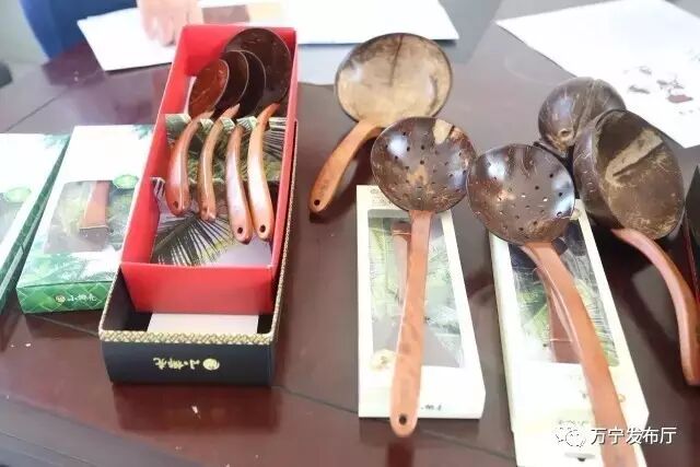 创业基地负责人林仕皇介绍,这些餐具均为海南(万宁)小椰壳工艺品厂的工人手工打磨而成。“取材来自咱们海南最常见的椰壳,企业还从海外引进先进的制造工艺,产品质量得以保障,椰壳餐具充满海南独特的风味,产品目前销往北京、上海、西安及海外,前几天刚刚签了一份20多万件的订单,目前是供不应求的状态。”林仕皇说。