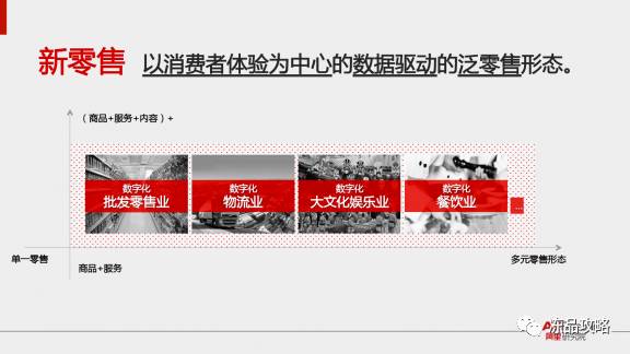 同为电商巨头的阿里对零售有着自己的判断,马云在2016年的云栖大会上提出了“新零售”的概念,马云将其解读为线上线下的融合,数据与物流的融合。在将近一年之后,这个概念被阿里研究院以报告的形式固化为“以消费者体验为中心的数据驱动的泛零售形态,从单一零售转向多元零售形态”,实际上仍是对马云以数据、物流、线上+线下为核心的理念延伸。