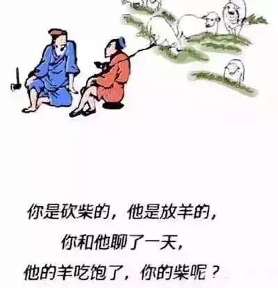 你是砍柴的,他是放羊的,你和他聊了一天,你们决定合作一起开个烤全羊的店,几年后你们开了很多连锁店,开始系统化管理,最后你也不需要砍柴了,他也不需要放羊了,你们依然在山上谈笑风生,但是心境已截然不同!