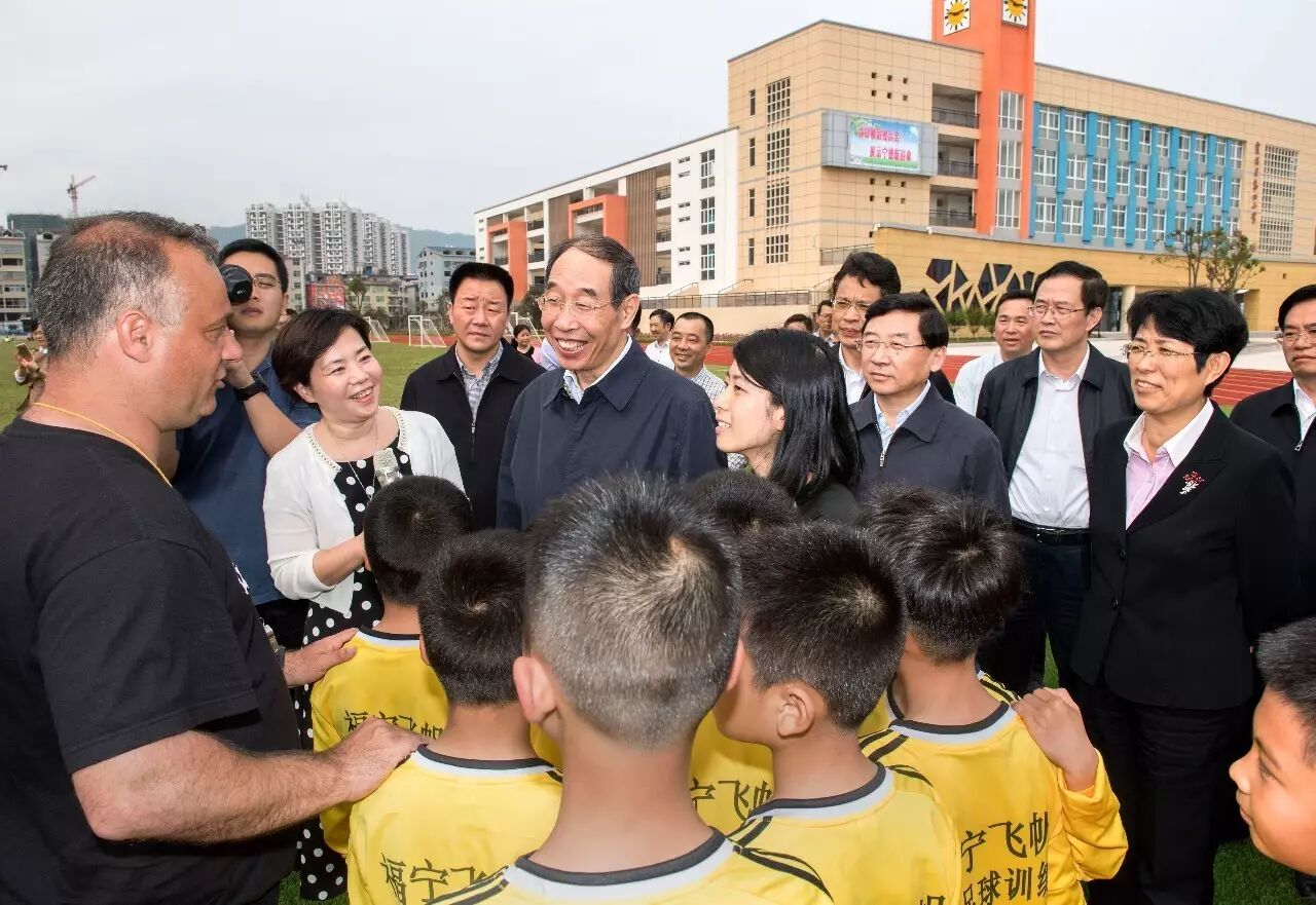 检查组与葡萄牙籍足球教练和小学生足球队员们交流