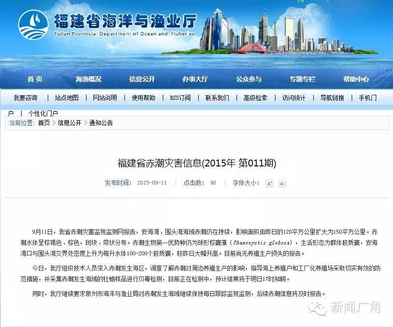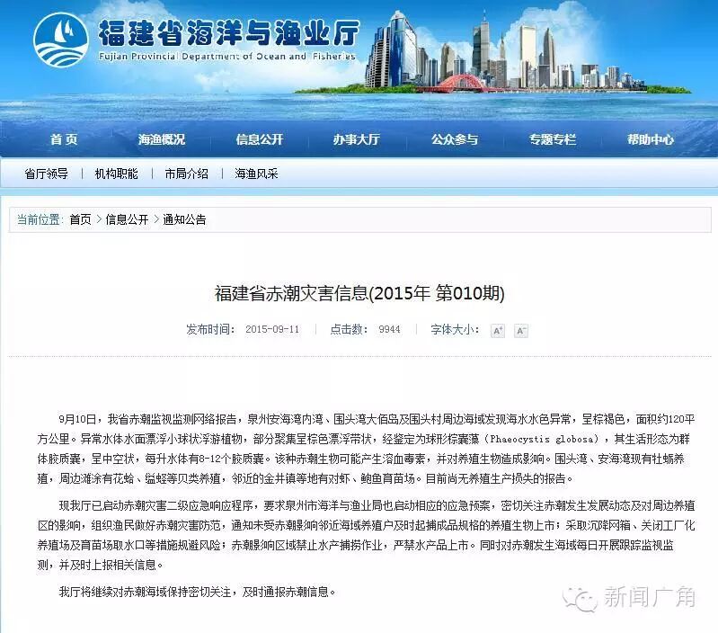 同时,我厅继续要求泉州市海洋与渔业局对赤潮发生海域继续保持每日跟踪监视监测,后续赤潮信息将及时报告。