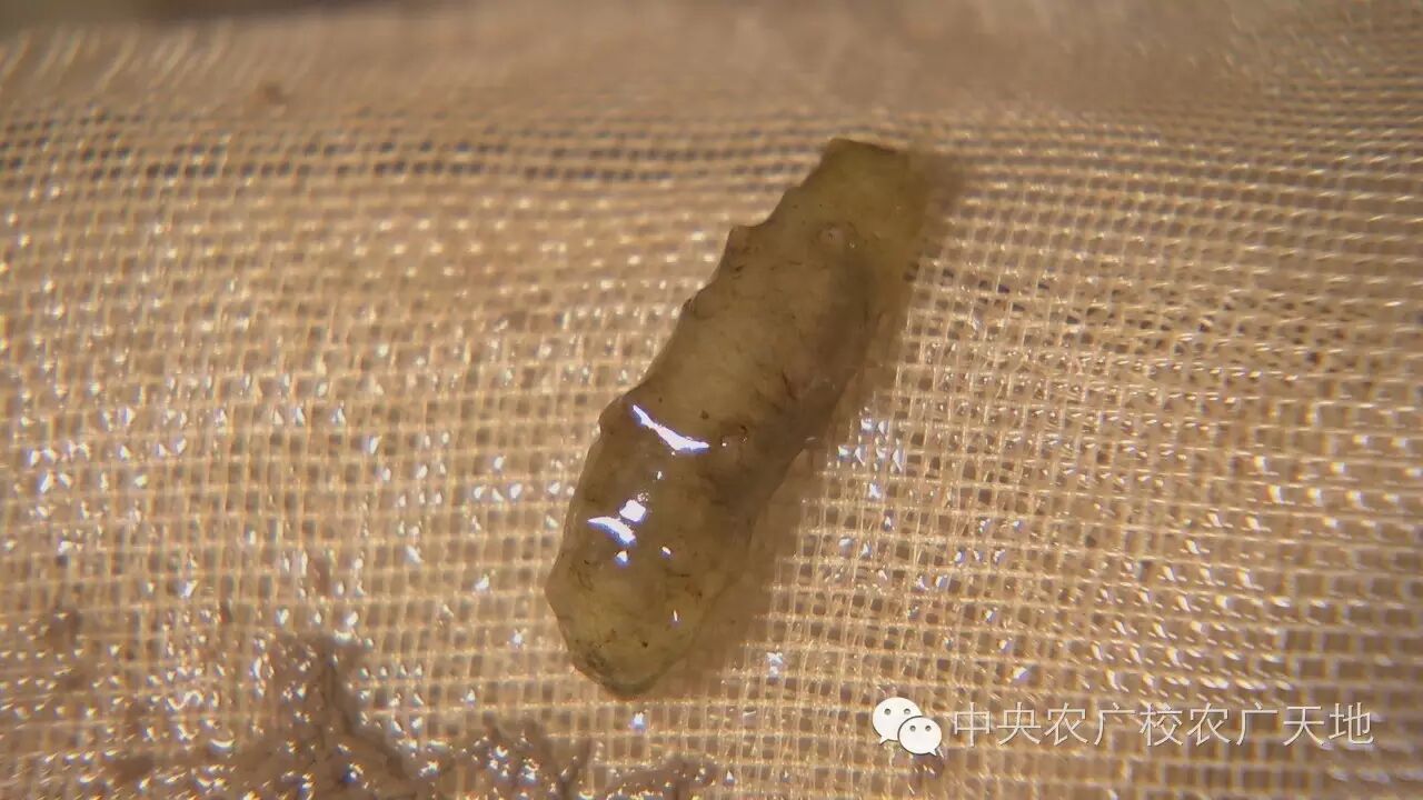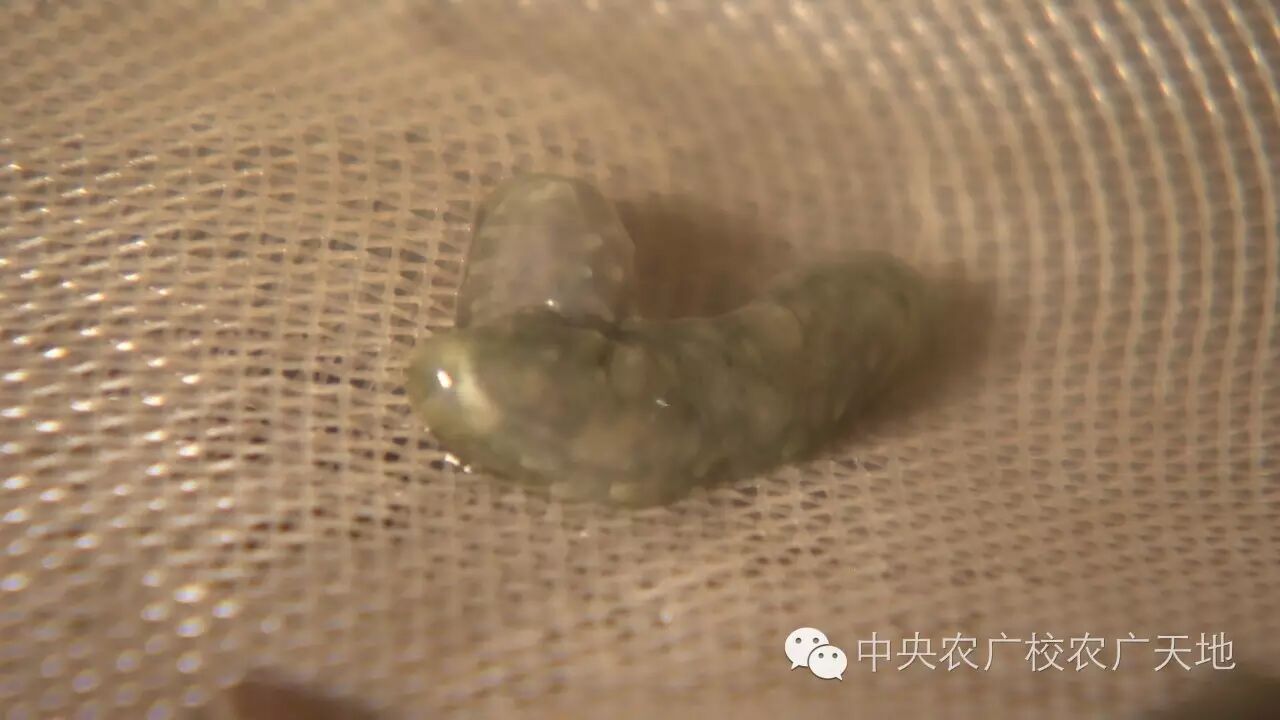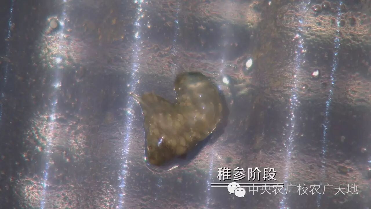技术员告诉我们,海参的受精卵孵化后,要经过大耳幼体阶段、樽形幼体阶段、稚参阶段,才到了现在这个幼参阶段。