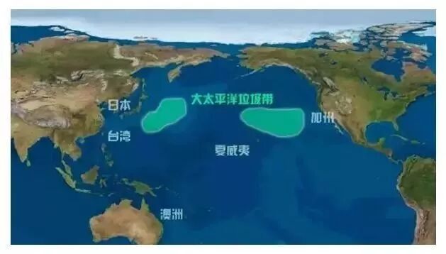 ▲ 图中青色标识的地区就是垃圾大陆,也叫大平洋垃圾带。