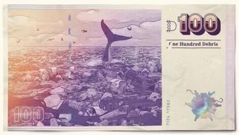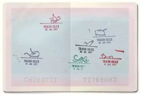 ▲ 护照封面左侧是被塑料套住的海龟,右侧是绳索圈住的海报,上方是捡拾垃圾的海鸟。中心则是缓缓下沉的鲸尾