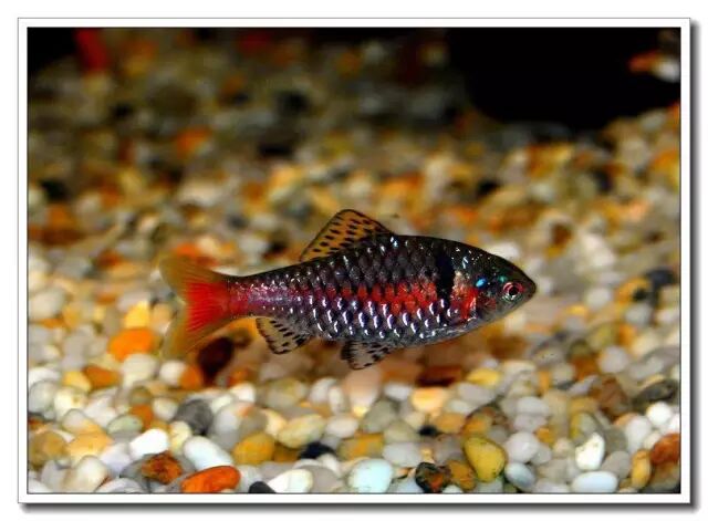 在水族箱书籍中有许多鲤亚科鱼类适合介绍给初次养鱼的朋友。在这只介绍一些令人喜爱的种类,部分是因为它们的颜色很漂亮,不过也有些是因为它们容易饲养。首先是漂亮的鲤亚科,玫瑰鲫(Barbus conchonius),它在水生生物学里被认为是最典型的鲤亚科,这种雄鱼在雌鱼产卵期以它非常漂亮的红色明显区别于银色亮光的雌鱼。![]()