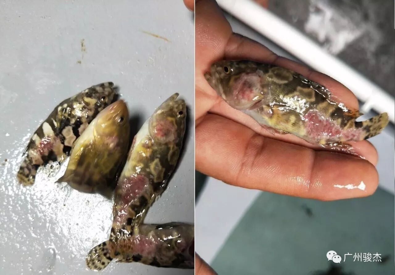 2、郑老板原本也用过聚维铜碘和其他抗生素浸泡,但没有效果,是否跟产品质量有关呢?所以选择品质好的产品很重要。3、个人觉得在浸泡的同时如果能再内服一些恩诺沙星类产品,如广州骏杰公司生产的鱼虾康。可能效果更佳,这次因为郑老板觉得效果已经不错了,所以不再用内服药。4、通过观察发现他们这的水质是直接从海里抽过来,这有点不合理,其他的不说,最起码有个沙滤池,通过沙滤池再流入水泥池更好。5、如果以上方案效果差或不能根治,也可考虑再用些杀真菌方面的产品,比如广州骏杰公司生产的霉菌沙星等。6、尽管以上方案治疗石斑鱼烂身、烂尾效果非常好,对外塘效果应该也好(但要控制好用药量),但国家政策的原因(抗生素禁止泼洒),不宜用于外塘使用,请大家遵守国家相关政策。