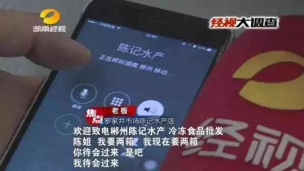 在认为安全后,“陈记水产”的老板电话通知送货!随后,一组记者原地等待,另一组记者埋伏在周边,密切观察,伺机跟踪、追查货源!在等待了近一个小时之后,送货人来了!