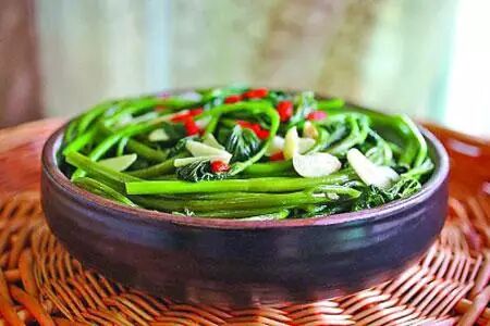 1.红薯叶一定要放蒜米、大火翻炒才能更香