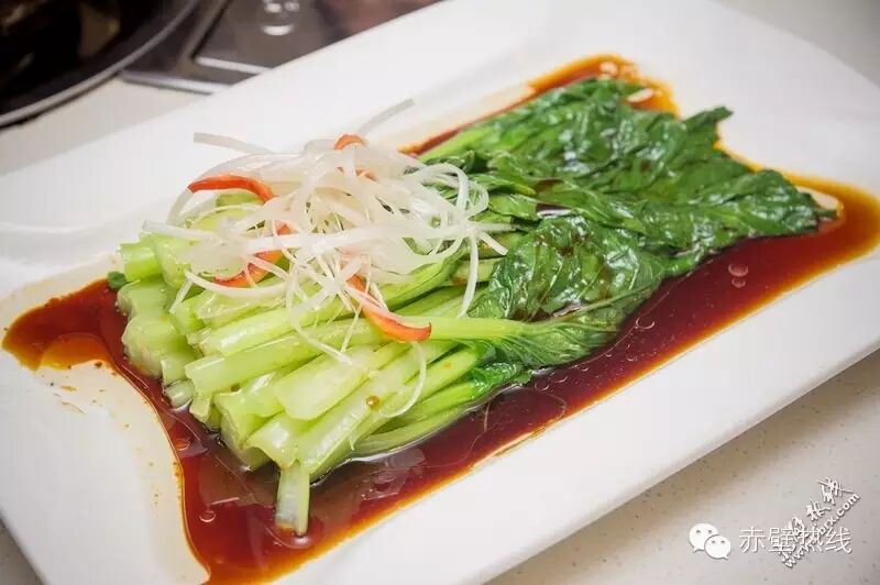 广东烫菜心,无论是外形和味道上,都非常地道正常,浇汁地道,菜心烫的火候也把握得十分好,越是此种小菜,越是能体现厨师功底。这手广式菜系的水平,确实不错。