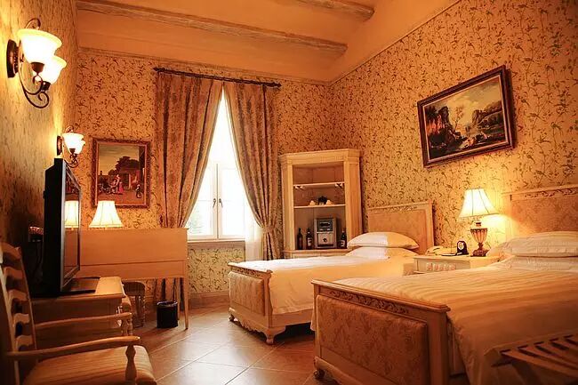 客房整体风格由欧洲专业酒店规划公司设计,从客房装饰色彩、材质及灯具、艺术品、布草等各个细节处充分营造出欧洲贵族般风情。