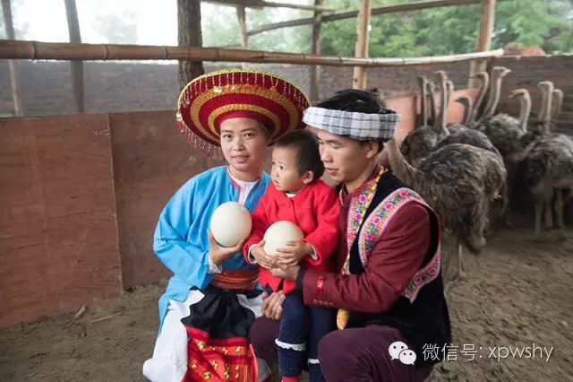 满天星瑶寨珍禽养殖基地位于花瑶同胞居住的沿溪乡烂泥湾村楼木坪,是溆浦、隆回、新化三县交界之处,海拔在1200米以上,山高林密,风光秀丽,常年云烟缭绕,如梦幻仙境。贺文华等几位志同道合的花瑶同胞,依托山地资源,发展特色养殖,同时结合雪峰山花瑶文化,努力打造生态文化旅游产业,成就脱贫致富梦想。贺文华是满天星瑶寨珍禽养殖基地负责人,他说:“我从小生长在这美丽、山青水秀的山村里,目睹家乡的贫穷与落后。后来长大了,走向城市,也目睹城市的繁华与富饶,心中总怀惴一个梦想,让家乡也能变成跟城市一样过上富足美好的生活。”贺文华是1986年出生的年轻小伙。结婚后,夫妻俩就一直在家喂养土鸡。后来在网上浏览,发现养珍禽是个好项目。这个想法得到在外务工的几个瑶族同胞赞同,决定合伙创办。自筹资金、村民入股,并在当地政府的支持下,得到小额贷款政府贴息,基地很快就组建起来了。现在已投入100多万元,除了喂养土鸡外,还喂养鸵鸟、七彩野鸡、孔雀、火鸡等珍禽。还建有餐饮、住宿、烧烤、KTV、露营、钓鱼等娱乐场所。这里位于雪峰山深处,风光旖旎,每天来基地观光、休闲和购买珍禽的人很多。?在驼鸟养殖基地,贺文华夫妻正忙着给驼鸟喂青饲料,高大的驼鸟时而啄食、时而翩翩起舞,四面八方的游客兴奋不已,纷纷合影留念。