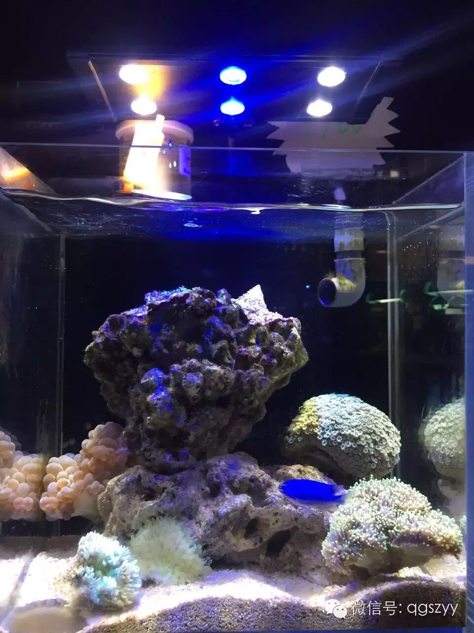 30厘米海水珊瑚礁生态系统,红海星专业迷你蛋白质分离器,奥德赛专业海水灯光系统,蓝白光可单独控制,活石,活沙,微生物生态系统已经建立完成。由于海水缸的特殊性,售后服务一月一次,免费三个月打理及换水。