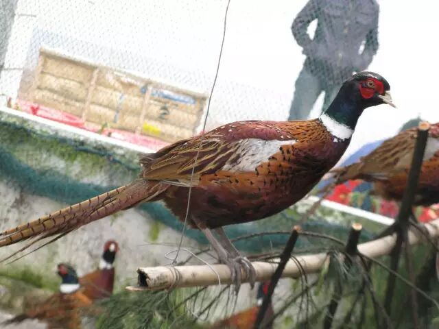 他用围墙和“天网”构筑成的养殖场,远远看去格外显眼。红色的脸,墨绿色的羽冠,颈部白色的“围脖”,褐红色的躯体上伸出一对漂亮的翅膀,尾部突兀出几根强劲的羽毛,跑动起来像个华丽的贵族——这就是七彩山鸡。
