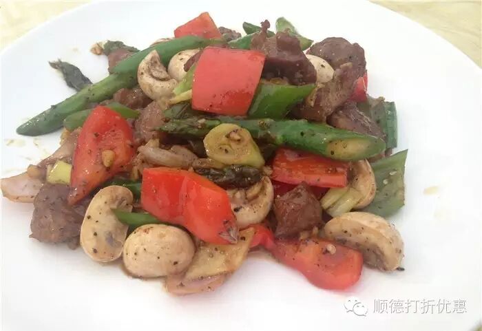 “黑椒煎雪花牛柳”,牛柳粒蛮多,牛柳很嫩,像是煎牛排切成的小粒,芦笋和杏苞菇点缀,芦笋不仅鲜美清新的味道和丝滑的口感,而且含有丰富的蛋白质、碳水化合物、多种维生素和多种氨基酸,很有食欲。