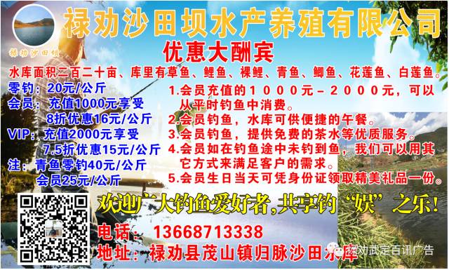 禄劝沙田坝水产养殖有限公司 优惠大酬宾