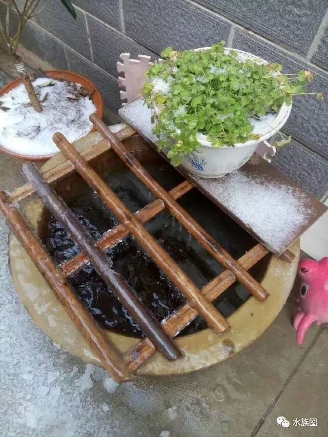 锦鲤是冷水鱼,水结冰了也没事。一开始还担心鱼会冻死呢。店家说锦鲤冬天好养,夏天反而不好养了,因为天热,鱼容易生病。