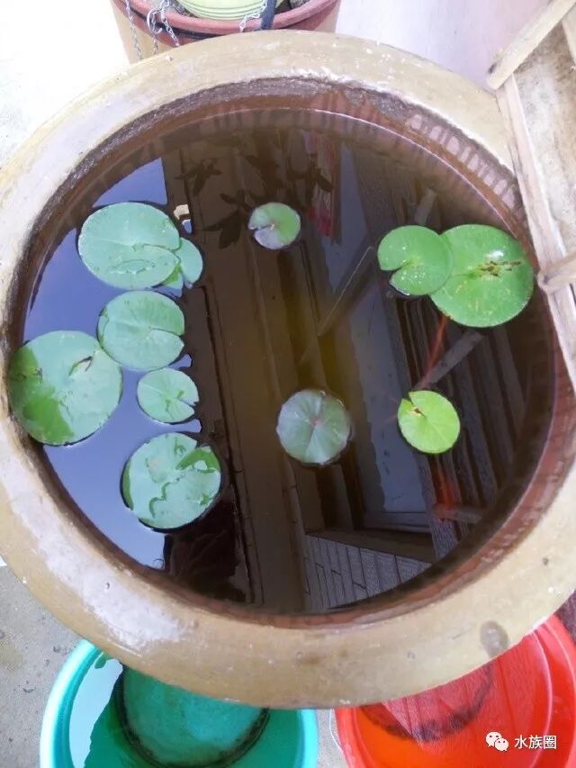 但是盆壁上还是没有青苔,形成不了硝化系统啊!在缸里再加颗睡莲吧!给鱼挡挡太阳。