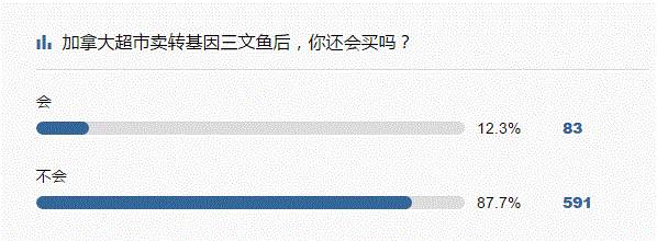 本地中文媒体的调查也显示,接近90%的网民表示,不会购买转基因三文鱼。