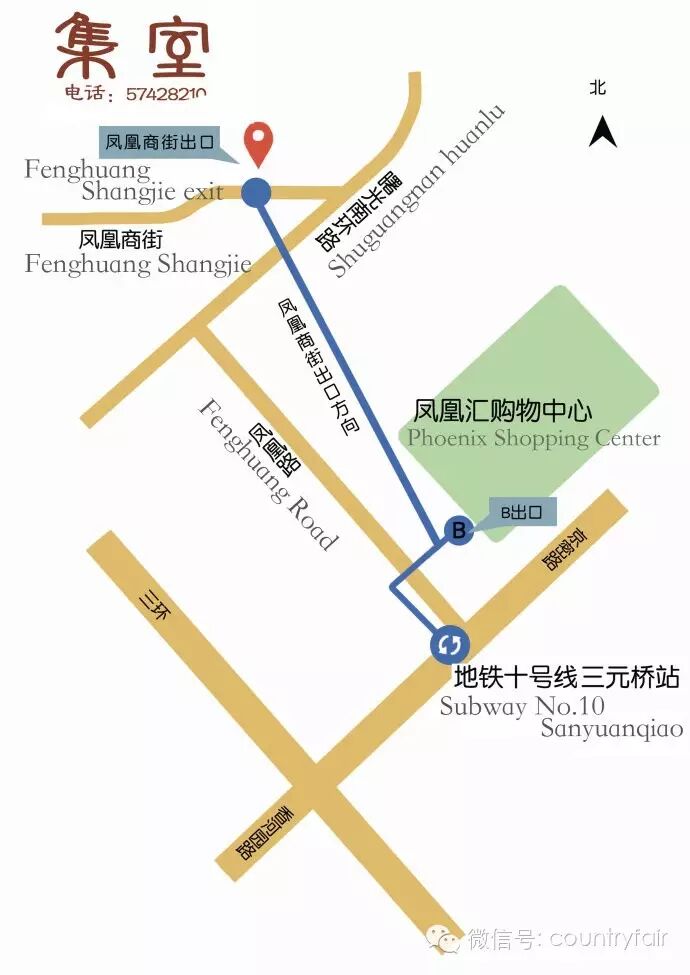 乘车路线:地铁10号线三元桥站凤凰商街出口即是。