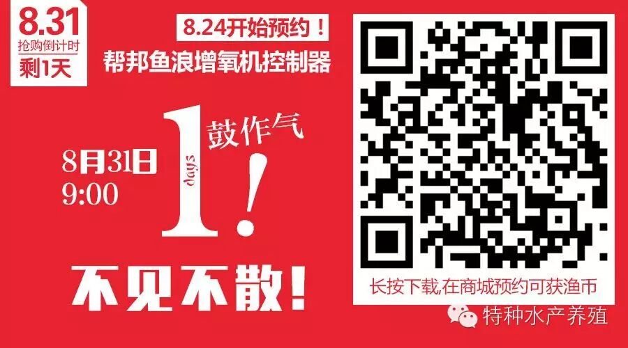 重磅好消息!熬了一个月的“鱼粉”们终于要熬到头啦!!!帮邦鱼浪增氧机控制器在水产头条App商城开始预约了,预约成功每台可优惠百元呢,了解详情请点击“阅读原文”。