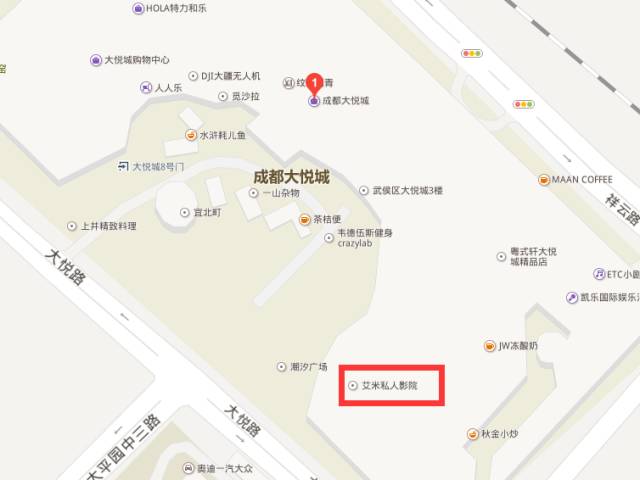 如果您开车,直接输入导航大悦城停车场,进入大悦城做电梯上4L就可以找到艾米1895电影街;