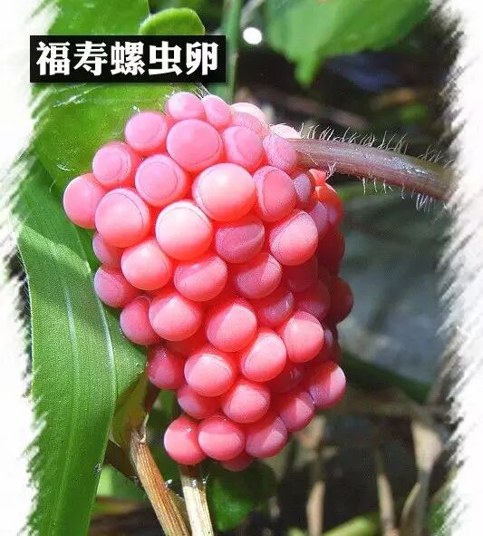 福寿螺卵,外壁为粉红色,内壁为血红色。每一个内壁里都包裹着一个完整的小福寿螺。