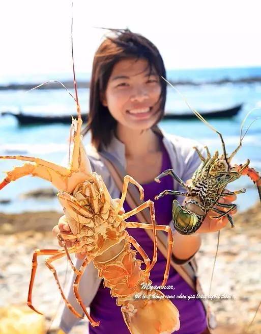 缅甸的龙虾,那可是闻名世界的。在海滩,有很多巨大版龙虾都是在天然海水里颐养天年后,自然老死的。相信很多小伙伴看到这,就想奔往缅甸的海鲜市场了。
