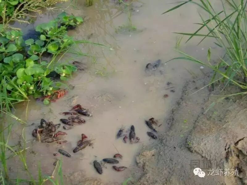 2.池塘下风口有较多黄色泡沫或黑色泡沫,池塘中不同区域的水色不一样,上下左右水色分层分区!