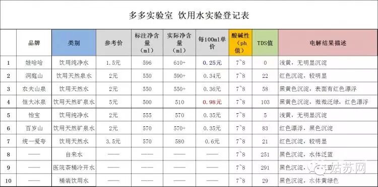 · 参与对比的两款纯净水(娃哈哈,怡宝)确实纯净无杂质。