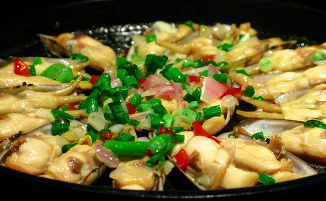 把锅热油,把切片的姜、蒜、葱白放入炝锅,待其出香味时放蛏子炒。等蛏子壳都张开时放料酒,稍煮加水(水可以稍多一些作汤喝),待水变白后改小火。10分钟后,加少许盐,撒上葱花出锅。由于蛏子本身就很鲜,所以强烈不建议再加鸡精,以免走味。
