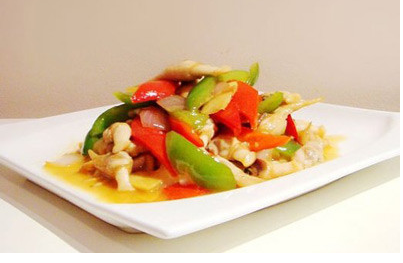 蛏子用清水冲洗干净,下入开水锅煮几分钟后捞出,用冷水冲洗,将蛏子剥壳去黑线备用。起油锅,倒入少量的油烧热,接着倒入洋葱块,青红椒煸炒出香味。倒入处理好的蛏子肉煸炒1分钟后加入适量蒸鱼豉油继续翻炒均匀,最后加入盐炒均匀即可出锅。