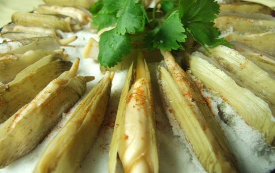 先介绍一种最有海边人特色的蛏子做法:倒笃竹筒蛏