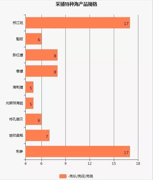 《条例》规定,采捕特种海产品,不得小于下列规格: