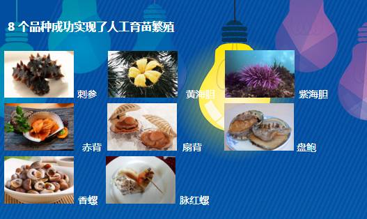 大连市9特种海产品,是指大连沿海海域特有的具有较高经济价值的刺参、皱纹盘鲍、栉孔扇贝、光棘球海胆 ( 紫海胆 ) 、海刺猬 ( 黄海胆 ) 、香螺、脉红螺 ( 红里子 ) 、魁蚶 ( 赤贝 ) 、栉江珧 ( 簸萁蛤 ) 等地方名贵海产品。目前,这 9 种特种海产品中,除栉江珧外,其它 8 个品种都成功实现了人工育苗繁殖。