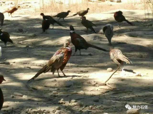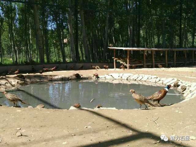 走近梁家河七彩山鸡养殖园就听到大山鸡“嘎、嘎”的不断鸣叫声,养殖场在铁丝、尼龙网等围成的高大围网内养殖有大小七彩山鸡4000多只,乌鸡4000多只,及其它禽类2000多只,占地10亩多。石堡镇政府利用梁家河村地面原有灌木、草丛,依山而建的围笼让山鸡像在野化环境中生存、繁育,大小山鸡拖着长长的尾巴,在笼舍内不断奔跑、飞跃,十分逗人喜爱。在石堡镇精心营造的原生态环境中,养殖园内呈现出一派生机勃勃的景象。
