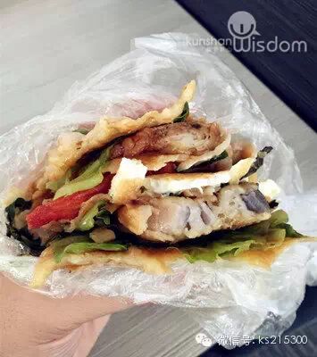 要说蛋饼,还是昆山边上那个摊子上的味道最好。藕片、生菜、里脊肉、土豆甚至是粢饭糕,只要你想加进去的,老板都能给你全部包在一起。这样的照片晒出去,吃货小达人非你莫属!