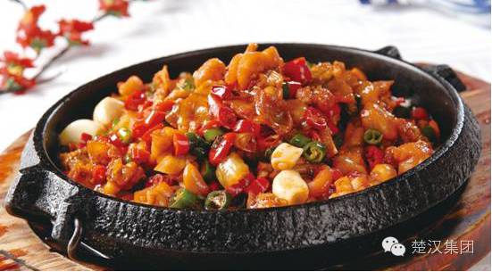 5、将炒好的青蛙放入烧热的铁板上即可。