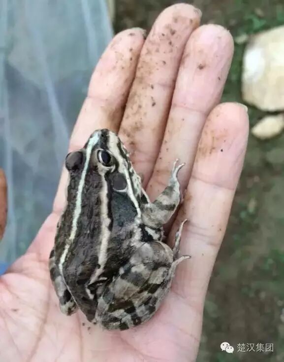 青蛙(黑斑蛙)一般体长约7~10厘米,成蛙体重一般50~100克,雌蛙较大,雄蛙略小。头部略呈三角形,长略大于宽。眼大而凸出,眼后方有圆形鼓膜,大而明显。背部基色为黄绿色或深绿色,或带灰棕色,背部及两侧有不规则的黑斑。腹部白色,较多个体有背中线。因其所有个体的体侧都有褶皱,故生物学家将其定名为“黑斑侧褶蛙”。