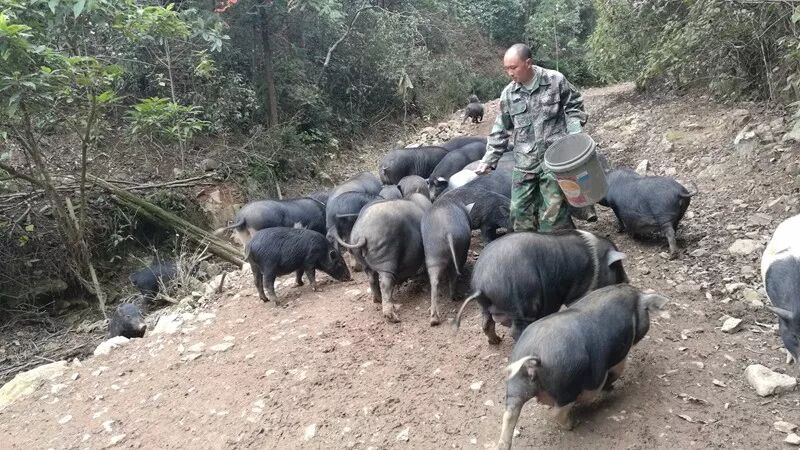 为了将猪养好,吴方敏选在了村里的一个山谷里,这里环境好,空间相对封闭,而且,为了保证猪肉的品质,他喂的都是玉米和红薯。