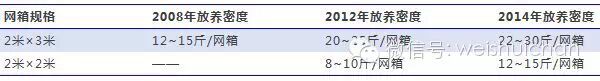 以2米×3米的网箱为例,近2年的黄鳝放苗密度都比较接近,大部分集中在22~25斤/箱。2014年放苗密度的增加有两个原因:第一、鳝鱼苗种的价格比往年低很多;第二、去年大部分养殖户养殖亏本,今年想通过增加放苗量来收回去年的损失费用。