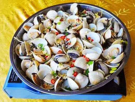毛蚶:贝壳较短而宽,长2-4.5cm,宽1.5-4cm,放射肋30-34条,肋上有小结节,表面被有带毛的壳皮。铰合齿约50枚。海瓜子多产于潮汐频繁的泥滩中。海瓜子因其形状大小似瓜子而得名,学名虹光亮樱蛤,也称“虹彩明樱蛤”、“扁蛤”。 海瓜子其实是蛤的一种,贝壳呈长卵形,长仅2厘米,壳极薄而易碎,表面灰白略带肉红色,常潜于泥涂中约5至6厘米处。古人有《咏海瓜子》的诗写道:冰盘推出碎玻璃,半杂青葱半带泥。莫笑老婆牙齿轮,梅花片片磕瓠犀。海瓜子吃法各异,一般有葱油、干菜海瓜子、茄子海瓜子,也可以酒渍、腌制。大多数情况下,我们一般以葱油炒海瓜子为多,先将海瓜子在淡盐水中浸养半日,待海瓜子泥沙吐尽,洗净备用。待沥尽水分,在锅中加少量食油,猛火热炒,放少许葱末、姜片、盐或酱油,炒至海瓜子薄壳弹开即可装盆食用。肉细嫩,味极鲜,是佐酒佳肴。河蚬,俗称沙蜊、蜊潦,瓣腮纲(Lame-llibranchia)、真瓣鳃目(Eulamellibranchia)、异齿亚目、蚬科、蚬属,双壳纲的一科,广泛分布于除南极洲外各大洲水域。壳厚而坚硬壳长约28mm,,外形圆形或近三角形。壳面光泽,具有同心圆的轮脉,黄褐色或棕褐色,壳内面白色或青紫色。蚬的做法太多,或炒或汤或煎或腌,五花八门,各有特色,令人叹为观止。脱壳的蚬肉或拌以葱丝炒之,或加入茨粉煎成蚬烙,皆成佳肴。河蚌,分布于亚洲、欧洲、北美和北非。大部分能在体内自然形成珍珠,肉可食。生活在江、河、湖、沼里的贝类,种类很多,一般常见的类喜欢生活在流动的河水里,另一类喜欢生活在水面平静的池塘里。河蚌外形呈椭圆形和卵圆形。壳质薄,易碎。两壳膨胀,后背部有时具后翼。壳顶宽大,略隆起,位于背缘中部或前端。壳面光滑,具同心圆的生长线或从壳顶到腹缘的绿色放射线。