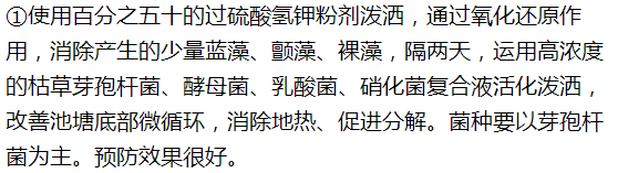 如果仅采用杀的办法,藻类死亡速度快,分解耗氧很容易造成泛塘。而且池塘有害藻类生存的条件存在,隔一段时间也容易复发。建议高温来临前须土壤微生物有益菌丰富,就不容易产生蓝藻。活菌的生长是需要时间的,也需要不间断使用,不是仅仅一次解决所有问题。