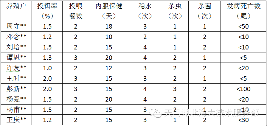 表1 4-5月份优秀鮰鱼养殖户养殖操作