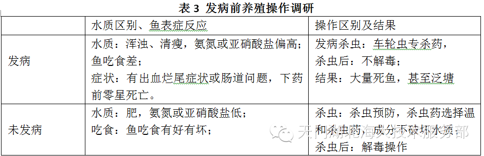 虽然通海口镇鮰鱼苗客户4-5月份没有出现大规模发病现象,但调研过程中仍有少部分客户出现了大量死鱼。对造成大量死亡的原因进行了调研,结果如表3: