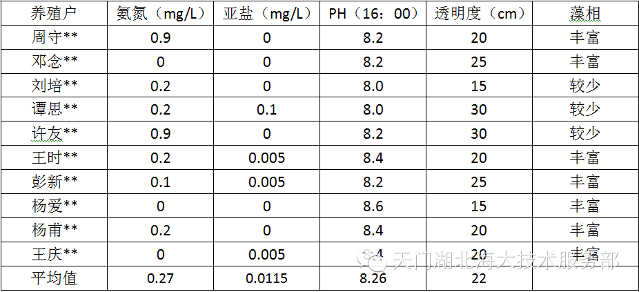 总结:从水质检测指标上看,大部分优质鮰鱼苗客户池塘水质指标:氨氮0.27mg/L左右;亚硝酸盐无,下午4点PH为8.26左右;显微镜镜检藻相比较丰富;透明度大于500px。